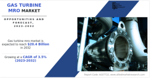 According to a recent report published by Allied Market Research, the Gas Turbine MRO Market size was valued at $14.5 billion in 2022 and is projected to reach $20.4 billion by 2032, growing at a CAGR of 3.5% from 2023 to 2032. The market growth is largely driven by the rising global demand for power generation, technological advancements in predictive maintenance, and the transition from coal-based to natural gas-based energy solutions.